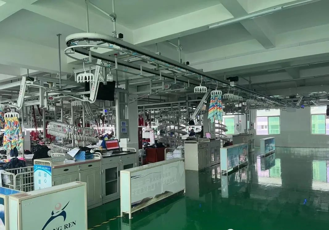 從縫挑到后整裝箱這些工序,傳統(tǒng)車間需要4個車間運轉(zhuǎn),利用吊掛流水線生產(chǎn)后,僅需2個車間運轉(zhuǎn),既節(jié)省空間,又減少貨物人工運轉(zhuǎn)和等待浪費。吊掛流水線上可采集和顯示實時生產(chǎn)資料,直觀清晰,工人之間互相比對實時的計件資料,你追我趕相互競速,大大促進生產(chǎn)高速運行,營造良好的生產(chǎn)氛圍。
